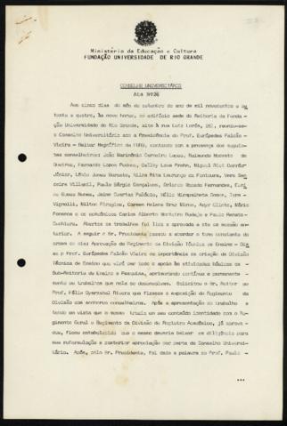 Documento em suporte papel e datilografado. A ata é registrada em uma estrutura sequencial, de acordo com o número da reunião.