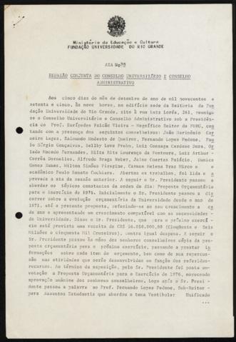 Documento em suporte papel e datilografado. A ata é registrada em uma estrutura sequencial, de acordo com o número da reunião.