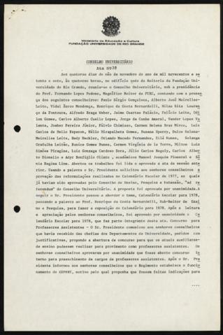 - Prof. Henrique da Costa Bernardelli, Sub-Reitor de Ensino e Pesquisa, apresentou o calendário para 1978, sendo aprovado pelos conselheiros.