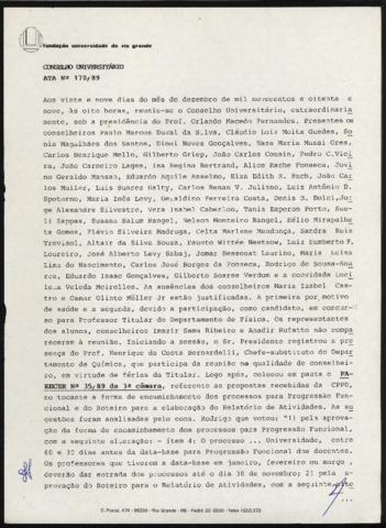 - Parecer nº 35/89 da 3ª Câmara do Conselho Universitário. Assunto: proposta da Comissão Permanente de Pessoal Docente (CPPD) quanto a orientação para encaminhamento de processo para progressão funcional e do roteiro para a elaboração do relatório de atividades. Após leitura e retificações a proposição foi aprovada pelo Plenário.