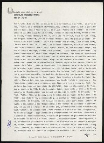 - Parecer nº 02/90 da 3ª Câmara do Conselho Universitário. Assunto: aprovação das datas do cronograma da proposta metodológica para discussão do Regime Acadêmico na Universidade do Rio Grande. Aprovado.