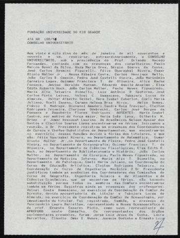 - Parecer nº 01/91 da 1ª Câmara do Conselho Universitário. Assunto: homologação e apoio as medidas tomadas pelo reitor, Orlando Macedo Fernandes quanto a incorporação da Unidade de Referência de Preços (URP) de fevereiro de 1989, e ao pagamento de anuênio e reposição de pessoal. O Conselho solicitou esclarecimentos sobre o comentário na Universidade de que a Procuradoria Jurídica iria entrar com o Mandato de Segurança contra as medidas. Orlando Macedo Fernandes disse que tinha receio de que o pagamento da Unidade de Referência de Preços (URP) de reajuste de preços e salários aos docentes, demorasse a ser efetuado, como aconteceu com os técnico-administrativos, ao qual havia sido dado ganho de causa em 1989 e foi pago somente em 1991. Explicou que houve orientação da Secretaria Nacional de Educação Superior (SENESU) para as procuradorias jurídicas das Instituições Federais de Ensino Superior (IFES), para entrarem com pedidos de mandato de segurança contra estes pagamentos, mas que como reitor não aceitou e o procurador da FURG acatou esta decisão. Afirmou que pretende lutar para que estas decisões sejam levadas adiante. Posto em votação, o Parecer foi aprovado.