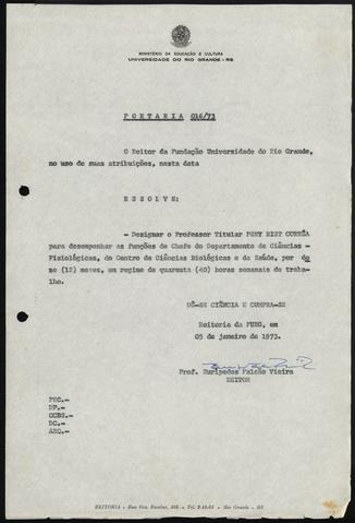 Portaria que designa o professor titular Peri Riet Corrêa para desempenhar funções de chefe do Departamento de Ciências Fisiológicas , do Centro de Ciências Biológicas e da Saúde por 12 meses em regime de 40 horas.