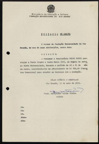 Item BR RSFURG GR AG 000-OF 010- PG- D1-134 - Portaria GR Nº 106/73