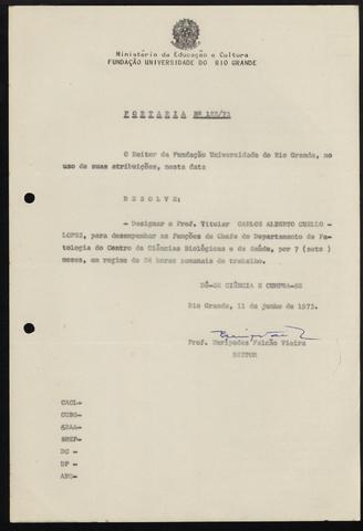 Portaria que designa o professor Titular Carlos Alberto Cuello Lopes, para desempenhar as funções de Chefe do Departamento de Patologia do Centro de Ciências Biológicas e da Saúde, por sete meses, em regime de 24 horas semanais de trabalho.