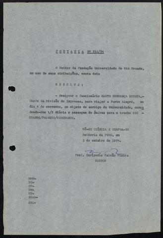 Portaria GR Nº 216/74
